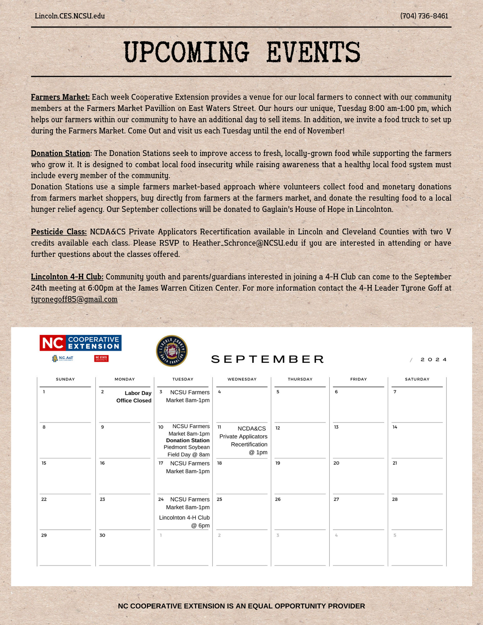 Collapse ▲Here is Lincoln County’s Newsletter from Cooperative Extension.